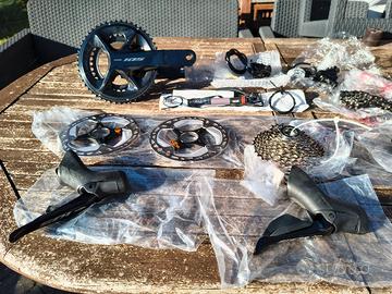 Vendo gruppo elettronico Shimano 105 di2 12v, componenti come da foto, smontato da bici nuova, mai usato. Trasmissione Cambio Shimano 105 Di2 R7150 Deragliatore Shimano 105 Di2 R7170 Leve cambio Shimano 105 Di2 R7170, wireless, 2x12 Catena Shimano 105, 12-speed Guarnitura Shimano 105 R7100, 50/34. Lunghezza pedivelle 172,5. Pacco pignoni Shimano 105 R7100, 11-34, 12-speed Freni Freni Shimano 105 R7170 hydraulic disc, 160/160mm RT70 rotors Leve Freno Shimano 105 Di2 R7170 hydraulic disc. Completo di batteria, cavetto ricarica, cablaggi. Per pesi ed altri dettagli visitare il sito ufficiale. Trattabile