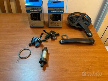 Metto in vendita gruppi schimano nuovo, smotato da bici nuova. Composto: Manettino 7 V schimano Deragliatore anteriore 3V schimano altus Movimento centrale a perno quadro Deragliatore Posteriore schimano acera 9v Guarnitura 3 V Pignone posteriore 11-34 a filetto.