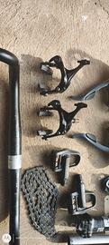 Gruppo Shimano misto Claris 2x8 velocità, tutto ciò che vedete in foto, guarnitura 50/34 170mm, pinze freno, leve, cambio deragliatore, pedali keo max, reggisella, attacco manubrio e manubrio, catena