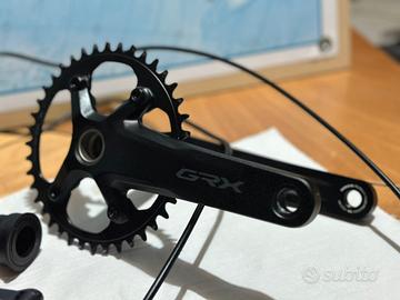 Vendo gruppo Shimano GRX 12v con freni idraulici e cambio meccanico. Come in foto, vendo: -Guarnitura 172,5mm con corona 40T -Movimento centrale press fitt -Cambio posteriore -Pinze freno post mount con pastiglie con dissipatore -Catena -Comandi cambio/freno con tubi idraulici Il gruppo è perfetto, praticamente nuovo per passaggio ad elettronico. Per qualsiasi domanda o ulteriore foto, rimango a disposizione.