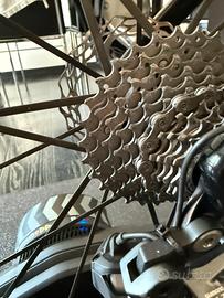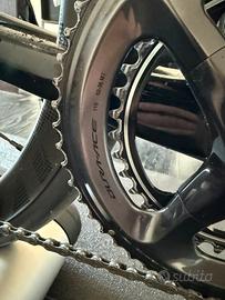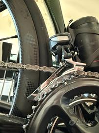 Vendo GRUPPO SHIMANO di2 11V cosi composto: - GUARNITURA DURACE 52-36 (pedivelle 172.5) - DERAGLIATORE POST E ANT ULTEGRA (con segni di usura) - PACCO PIGNONI ULTEGRA 11-30 - CATENA DURACE 12V - LEVE ULTEGRA (segnate come in foto) - PINZE DURA-ACE - CAMBLAGGIO COMPLETO + BATTERIA - D-FLY (collegamento BLUETOOH per garmin/smartphone) - CENTRALINA all’interno del manubrio - CARICABATTERIA Vedo per passaggio a 12 VELOCITÀ. Gradirei vendere tutto in blocco. Per il prezzo possiamo accordarci telefonicamente. Il gruppo é perfettamente funzionante. Il gruppo viene venduto con la gabbia DURA ACE e non con quella CERAMICSPEED in foto.