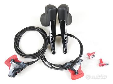Gruppo elettronico 2x12V senza fili per freni a disco, composto dai seguenti 7 elementi: - comandi elettronici Force HRD AXS 12V wireless, forniti con tubi/olio per freni; - cambio elettronico Force AXS 12V wireless; - deragliatore elettronico Force AXS 12V wireless; - pinze freni Force FlatMount, con adattatori per dischi da 160 mm.; - guarnitura Force AXS 12V Quarq Powermeter con misuratore di potenza - 172,5 mm. - 48/35 denti; - pignoni Force AXS E1 12V - 10/33 denti; - catena Apex AXS 12V. Il kit può essere installato su qualunque telaio per pinze flat-mount, poichè essendo completamente senza fili, non è necessaria alcuna predisposizione. Coppia batterie eTap con caricatore USB vendute separatamente (+125 euro). Pesi: 806 gr. (comandi con pinze, tubi ed olio) + 298 gr. (cambio) + 156 gr. (deragliatore) + 270 gr. (pignoni) + 819 gr. (guarnitura) + 259 gr. (catena). Prodotto nuovo, fatturato all'acquirente, con 2 anni di garanzia. Spedizione assicurata tramite corriere SDA.