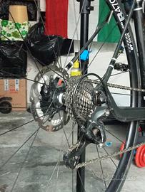 ciao la bici era di un amico,taglia 51,max 1,75 altezza,il telaio GT in carbonio nessun danno,cambio e accessori CANNONDALE.