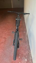 Mountain bike enduro entry level taglia L batteria 504kWh cerchi 29” copertoni con camera d’aria e tannus armor antiforatura reggisella telescopico forcella sostituita: RockShox 35 Silver 160mm Specifiche tecniche: Telaio: telaio eForce Alloy 29", escursione 150 mm, Shimano STEPS Specific, batteria interna Forcella (sostituita): RockShox 35 Silver 160mm robusta, ottima per l’enduro (originale SR Suntour Zeron 35, 150 mm troppo morbida) Ammortizzatore: RockShox Deluxe Select R, 185x50mm, Trunnion metrico Display: Ciclocomputer Shimano SC-E7000 Caricabatterie: Shimano EC-E6000-1 Motore: Shimano STEPS DU-E7000 250W Batteria: Shimano STEPS BT-E8035, 504 Wh Catena: Shimano HG54, 10 velocità Guarnitura: Shimano FC-E8050, 170 mm, 34 denti Deragliatore: Shimano Deore GS Cambio: Shimano Deore, 10 velocità Cassetta: Shimano HG500, 11-42, 10 velocità Cerchi: WTB STX i29 TCS, 32h, tubeless ready Pneumatici: Schwalbe Nobby Nic (aggiunto kit antiforatura) Performance, 29 x 2.6", mescola Addix, tubeless ready / Schwalbe Nobby Nic Performance, 29 x 2.6", mescola Addix, tubeless ready Mozzi: Shimano MT400, 15x110 / Shimano MT400, 12x148 Punte: acciaio inossidabile, 14 g Freni: disco idraulico Shimano MT200, rotori RT10 180/180mm Manubrio: GT All Terra Riser, lega 6061, rise 15 mm, sweep 8°, rise 4°, larghezza 780 mm Attacco manubrio: GT All Terra, lega 6061, 31,8, 7° Serie sterzo: FSA NO.42, semi-integrata, cuscinetto sigillato, conica