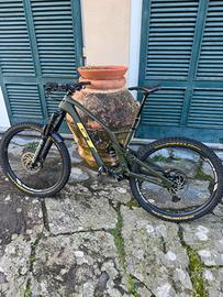 GT force carbon taglia L, io sono 1,80 , upgrade cerchi Fir, pneumatici Pirelli enduro tubeless, freni shimano saint con dischi 203 mm, manubrio FSA carbon, supporto manubrio corto 35 mm FSA, sella prologo, mono formula MOD, vendo così come montata in foto più tutti i ricambi originali freni sram, cerchi , manubrio ammo posteriore a aria, ecc ( pedali non inclusi ), sempre tenuta maniacalmente pulita e revisionata pochi segni di normale usura per il resto impeccabile.Che dire.. a malincuore vendo questo gran ferro vero missile da super enduro, per il poco tempo disponibile passo a ebike