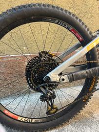 Freni shimano saint con dischi magura ice tech nuovi. 12x1 velocita. cassetta cambiata. Personalizzata con l’oro(per dettaglio freno) Forcella revisionata lyrik ultimate con neopos formula 180mm. Ammortizzatore rockshox coil deluxe. Mozzo hope pro4. ruote 27,5 Perno posteriore nuovo. Cuscinetti cambiati un mese fa. 💶leggermente trattabile ℹ️scrivete 📦ritiro sul posto o dintorni Enduro / All Mountain simili: Specialized Enduro, Santa Cruz, Overvolt, Zesty, Spicy, Canyon Strive, YT Capra, Giant Reign, Commencal, Mondraker, Nukeproof, Kona, Merida, Lapierre, Jeffsy, Tues Orbea, Tyee, Hugene Scott, Cannondale, Propain, Foxy, Dune, Crafty,enduro, bici enduro, all mountain, all-mountain, allmountain, trail, downhill light, freeride, trail bike, bici biammortizzata, bi ammortizzata, biammortizzata, full suspension, fullsuspension, full sospension, doppia sospensione Marchi MTB principali: Cube, Ghost, Haibike, KTM, Bianchi, Olympia, Bottecchia, Colnago, Wilier, Lee Cougan, BH, Bulls, Bergamont, Corratec, Focus E-MTB (per chi cerca elettrica ma valuta alternative): Turbo Levo, Kenevo, Rise, XDURO, SDURO, Shimano Steps, Bosch, Yamaha, Brose, Bafang, Fantic XF1, Atom X Categorie: mtb, mountain bike, enduro, downhill, freeride, trail, all mountain, biammortizzata, full suspension componentistica: freni a disco, freni 4 pistoni, freni idraulici, reggisella telescopico, dropper, monocorona, 10 velocità, 10v, sospensioni anteriori e posteriori, escursione 160mm, escursione 180mm, perno passante, boost, decatlhon, stabilità discesa.