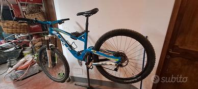 cerchi 27,5 raceface con bi corona anteriore e uno shimano deore 10v al posteriore mono fox con un escursione di 150 al posteriore e una forcella marzocchi 350 all'anteriore da 160 all'anteriore. viene venduta con sellino telescopico montato ma da revisionare come le sospensione per un funzionamento perfetto, accetto scambi con bici da downhill o elettriche enduro
