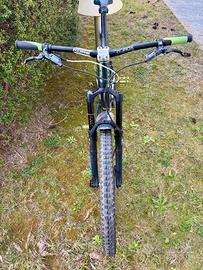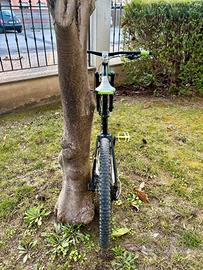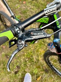 -Forcella Rockshox 150mm -Ammortizzatore Fox Float 184mm -Cambio Shimano Deore 10v -Freni Sram Guide R Pasticche Formula quasi finite -Dischi Formula 180mm -Pedivelle Shimano SLX 32d -Manubrio Kore Durox 740mm -Sella Fizik -Reggisella Crankbrothers Cobalt -Copertone Front Maxxis Minion Dhf 27.5x2.30 80% -Copertone Retro Schwalbe Magic Mary 27.5 30% -Tubeless Taglia M