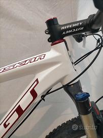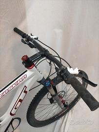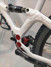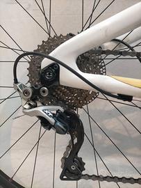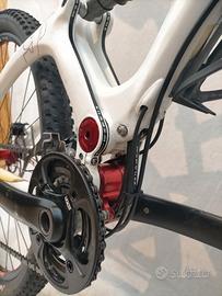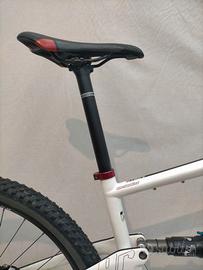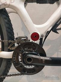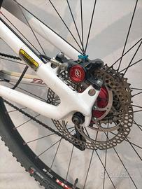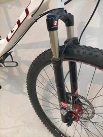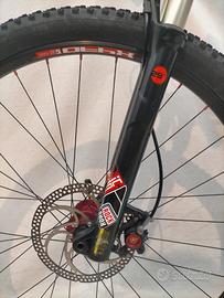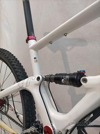 Ruote da 29" con copertoni seminuovi già trasformati in tubeless, escursione posteriore 100mm con ammortizzatore Fox, forcella Rock Shox 100mm bloccabile, freni a disco idraulici Formula T1, trasmissione 2x10v Shimano.