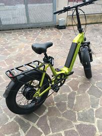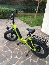 Vendo bici elettrica pieghevole, usata una volta sola, pari al nuovo. Nessun segno di usura, sempre tenuta in casa. GTA Mammoth FAT 20" è una fat bike elettrica pieghevole. Si tratta di una e-bike compatta progettata per la massima versatilità, combinando la stabilità delle ruote larghe con la praticità di un telaio richiudibile. - Realizzato in alluminio, con struttura pieghevole per facilitare il trasporto in auto o in piccoli spazi - Ruote da 20 pollici con pneumatici "Fat" da 20x4.0", ideali per affrontare terreni irregolari, sabbia o percorsi urbani con maggiore aderenza - motore XOFO al mozzo da 48V e una batteria integrata Cloud Power da 624 Wh (48V 13Ah), che garantisce una spinta vigorosa anche in salita - Include un cambio Shimano a 7 velocità, freni a disco idraulici per una frenata sicura e una forcella ammortizzata questo modello come una scelta solida per chi cerca stabilità e comfort sia su strada che su fuoristrada leggero.