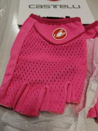 Guanti da ciclismo da donna Castelli Tesoro W Gloves, noti per essere leggeri e traspiranti ed ideali per le giornate calde. Taglia L da donna (corrisponde ad una taglia EU-7 di guanti) Nuovi ed in confezione originale. I palmi in pelle scamosciata AX stampata reggono bene le barre. Palmi imbottiti. Le linguette di trazione consentono una facile rimozione. Marca: Castelli Modello: Tesoro W Glove Colore: Rosa (come mostrato nelle immagini) Utilizzo: Progettati per il ciclismo, offrono la massima ventilazione grazie al tessuto mesh sul dorso. Sono un modello specifico pensato per il comfort e la traspirabilità, con un focus sulle prestazioni femminili.