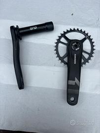 La guarnitura ha due uscite completa di corona da 34 denti 3 mm offset standard boost MTB