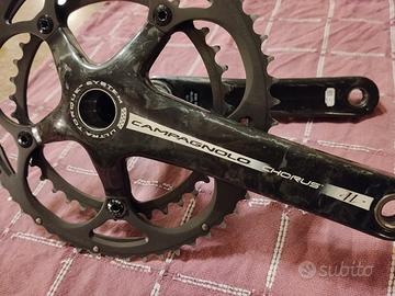 Vendo guarnitura per bici da corsa Campagnolo Chorus 11v in carbonio. Per gruppi 11 velocità, corone 53-39, lunghezza pedivelle 175 mm. con sistema Ultra Torque