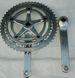 Guarnitura FB 52/42, perno quadro, anni 70. Pezzo molto raro, mai vista un'altra. Dadi di fissaggio Campagnolo. Ottime condizioni generali.