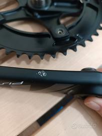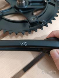 Prodotto mai usato smontato da una bici nuova. Come da foto la guarnitura ha dei difetti sulla pedivella destra causati dallo smontaggio errato di un pedale, questo non influisce sulle funzionalità