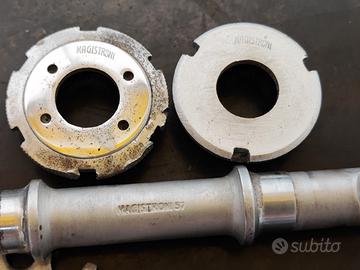 Vendo guarnitura corona unica 42 denti + movimento centrale marca magistroni. Componentistica d'epoca in condizione ni estetiche molto buone, con pochi segni d'usura. Ideale per sostituzione o allestimento di bici d'epoca di prestigio. Pedivelle, perno e calotte movimento centrale marchiati. Si possono vedere al mio domicilio, posso spedire a vostro carico.