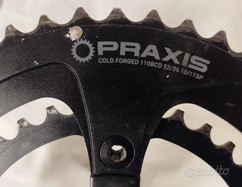 Guarnitura in alluminio marca Praxis Works . Perno M30 per movimento BB30 Specialized Cannondale ed altre marche. Pedivelle lunghe 172.5 Corone Praxis Works Cold Forged 110 BDC 52/36 10/11 SP Leva Time Shifting Tech Corone Alluminio 7050 T6 ideali per cambi Shimano Sram e Campy. Per cambio Di2 EPS eTap HollowTech Peso delle sole corone 52/36D 150 grammi. Foto reali condizioni buone .
