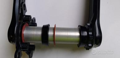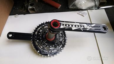 Vendo guarnitura rotor 3d+ con perno da 30mm e corone ovali rotor qx3 il tutto in ottime condizioni .Girobulloni 104 mm per MTB. Lunghezza pedivella 175