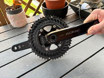 Vendo guarnitura Shimano 105 FC-R7100 per trasmissioni a 12 velocità. Il componente è stato smontato da bici nuova dopo una sola uscita di prova di 30 km per passaggio immediato a misuratore di potenza. Le pedivelle e le corone sono in condizioni estetiche e funzionali impeccabili, indistinguibili dal nuovo. Caratteristiche tecniche: Rapporti: 52-36T (Mid-Compact) Lunghezza pedivelle: 172,5 mm Compatibilità: Gruppi Shimano 12v Road (Di2 e Meccanico) Stato: Usato solo per test (30 km), zero segni di usura. Prezzo: 95 € (Non trattabili, già riproporzionato rispetto al miglior prezzo online per un prodotto pari al nuovo). Disponibile per ritiro a mano a Segrate o spedizione tracciata a carico dell'acquirente.
