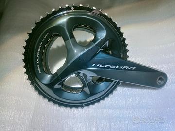 Guarnitura Shimano Ultegra 52/36 11 velocità con pedivella da 172.5mm. Le condizioni sono perfette perché usata poco e come si vede in foto i denti possono fare ancora moltissimi chilometri, la pedivella sinistra presenta un piccolo segno di usura dovuto al contatto con la scarpa