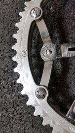 Guarnitura Simplex anni 40/50, predisposta per perno vintage a chiavelle. Corone in alluminio da 45 e 49 denti, originali Simplex, in condizioni pari al nuovo. Filettature pedali perfette e pronte all'uso. Oggetto nel complesso in condizioni impeccabili, come da foto allegate. Cedo per mancato utilizzo.. A richiesta posso inviare ulteriori foto. Non scambio, non tratto sul prezzo, astenersi perditempo e/o malintenzionati. Per eventuale spedizione in Italia aggiungere euro 10,00 al prezzo di compravendita.