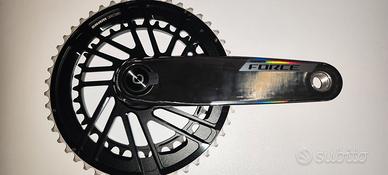 Guarnitura SRAM Force AXS DUB 48-35 powermeter Quark nel perno, pedivelle 172,5mm in carbonio, corone in alluminio in unico pezzo.