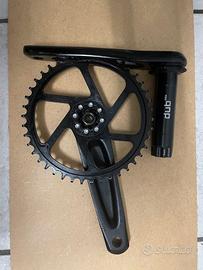 Ciao vendo guarnitura SRAM Rival, lunghezza pedivella 172.5 mm per movimento centrale DUB (29mm). Compresa corona Leonardi Racing da 42 denti. Il tutto è utile per una bici gravel. Rispondo in tempi brevi