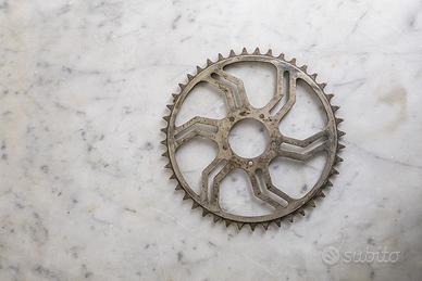 Coppia di pedivelle si lunghezza inglese ( maggiore di quella normale italiana ) ed attacco a cinque bulloni tipo BSA e corona nichelata in impeccabili condizioni , si tratta di ricambi rari e per questo il prezzo non è assolutamente trattabile, posso vendere separatamente le pedivelle a 40 euro e la corona a 40 euro.