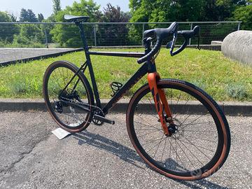 Negozio vende gravel Guerciotti Greto in taglia L! Kit telaio con 50 km, il resto della componentistica è NUOVO!!! TELAIO Greto in alluminio con forcella in carbonio CAMBIO Sram Apex 11v, 11-42t GUARNITURA FSA Gossamer, 40t FRENI TRP Spyre meccanici, 160/160 . RUOTE Alluminio COPERTONI Cinturato Adventure 700x40C