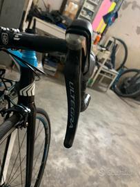 Vendo bici in carbonio modello Hibike 8:30 life taglia S/M(52) leve ultegra cambio shimano 105 11 velocita 11/28 ,movimento centrale shimano 105 50/34 ,pipetta e sterzo ritchey ,ruote fulcrum profilo 24 molto scorrevoli bici usata solo x fare rulli. Prezzo x immediato realizzo 320 euro.