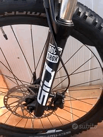 Vendo mtb taglia M alluminio vinta ad una estrazione... marca Haibike, forcella RockShox con comando a manubrio, freni idraulici Shimano, cambio 9 velocità Shimano, gomme Schwalbe, reggisella non propriamente telescopico ma ha una funzione ammortizzante per la colonna vertebrale...nuova come si evince dalle foto. Unico difetto...gli adesivi della forcella in parte sollevati per cattiva cura da parte del corriere...Spedisco, Paypal