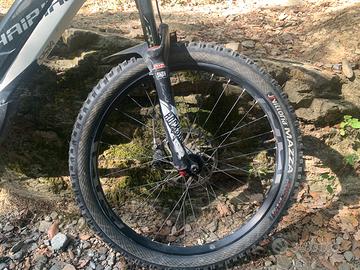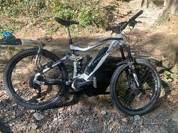 Bici Haibike all mountain sduro allmtn plus del 2015. La Bici ha i suoi anni ed è stata utilizzata per fare enduro per cui il telaio ha vari inestetismi come graffi e punti in cui è andata via la vernice, ma non ci sono crepe o bozze che possano comprometterne la stabilità (sono telai pesanti ma pressoché indistruttibili) . La bici ha sempre avuto adeguata manutenzione. Al momento monta vari upgrade e componentistica nuova.