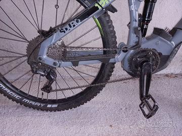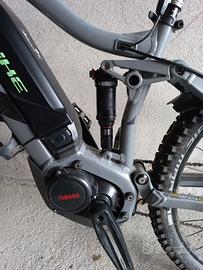 Emtb Haibike biammortizzata con motore Yamaha PW-SE da 250w 70Nm, batteria originale Yamaha 500Wh, telaio in alluminio, forcella RockShox 120mm, ammortizzatore posteriore RockShox, cambio Shimano Deore M6000, corona 34T, pacco pignoni 10v 11-42T, freni idraulici Shimano MT520 4 pistoni con dischi 203mm ant 180mm post, reggisella telescopico XLC 80mm con comando al manubrio, cerchi 27,5'', copertoni Schwalbe Magic Mary 2.4 ant/post come nuovi, peso 23kg con la batteria, acquistata settembre 2019, 6400km, completa di caricabatteria, chiavi batteria e istruzioni originali. Taglia telaio S perfetta per altezze ciclista 150-160cm.