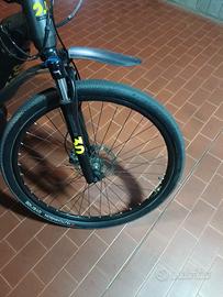 Non ha un rigo. Pneumatici cambiati per fare anche cicloturismo sterrato, 5 pollici. Le borse sono più capienti per cicloturismo. A corredo il parafango anteriore autentico