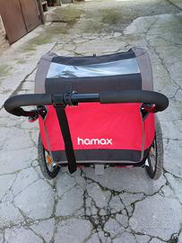 Hamax Rimorchio Bici usato pochissimo per 2 bambini con 3 ruota per usarlo come passeggino con freno, oppure accessori che lo trasforma in rimorchio per bici.