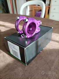 Fantastico attacco manubrio Hope Gravity 35 lunghezza 35mm x diametro manubrio 35mm, rise 0°, colore purple Lavorato al CNC, molto robusto, per utilizzo gravity, enduro e all mountain ma dal peso contenuto di 174gr. NUOVO, smontato da bici nuova completo di scatola originale!