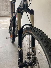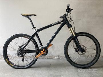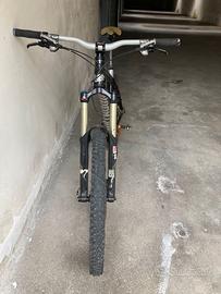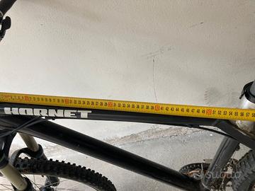 Vendo MTB front da enduro su telaio Hornet da 26”, bici divertente e reattiva, perfetta per chi vuole avvicinarsi al mondo dell’enduro senza spendere una fortuna. Componenti principali: Telaio Hornet hardtrail-enduro in alluminio taglia L - Forcella RockShox Lyrik 160 mm, abbassabile e bloccabile - Cambio Shimano SLX - Freni a disco Shimano XT - Ruote 26 stans no tube - Pedivelle Race Face Turbine doppia corona La bici è completamente funzionante e molto divertente sui trail: agile, stabile e ancora più che adatta a sentieri tecnici e discese pur mantenendo ottima pedabilità grazie alla forcella abbassabile e bloccabile Nota importante: Il telaio presenta una saldatura nella zona del collarino del reggisella a seguito di una piccola cricca che si era formata in passato. La riparazione è stata eseguita professionalmente a TIG da uno specialista e da allora la bici non ha dato problemi strutturali. La bici è ferma da circa due anni: non l’ho venduta prima perché speravo di rimetterla in uso, ma ora è giusto lasciarla andare. Ideale per chi vuole iniziare a fare enduro o divertirsi su trail tecnici con una bici solida e con componenti di qualità, senza investire troppo. Disponibile per visione e prova.