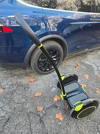 si collega con il telefono ha casse sotto il pianale per sentire la musica luci a led sulla barra da pianale a manubrio luci per guida notturna luci barra verde anche sotto al pianale ruote grandi coperte da carrozzeria oggetto professionale gestibile anche con telecomando in dotazione