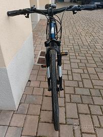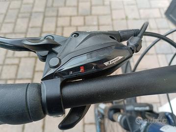 Claud Butler, gamma EXP, forcelle ammortizzate con blocco idraulico, cambio Shimano Acera a 24 velocità, mozzi Shimano, freni a disco idraulici Shimano, pneumatici Schwalbe Road Cruiser con protezione anti foratura e manubrio più largo con diametro maggiorato di 31,8 mm.
