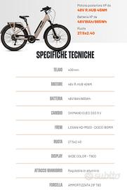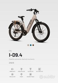 La I-D9.4 è equipaggiata con un motore su ruota posteriore XP da 48V – 250W (45Nm) e una batteria da 48V – 18Ah – 865Wh, pensata per garantire potenza e autonomia su percorsi urbani ed extraurbani.