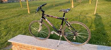 Bicicletta Fausto Coppi Ibrida uomo - Telaio in alluminio - Forcella ammortizzata regolabile, serie sterzo semi integrata 1 1/8" - Piega in alluminio ad angolo regolabile, manubrio in alluminio - Ruote 28 pollici con cerchi e mozzi in alluminio, pneumatici Vittoria Zaffiro 700 32C 7 Bar - Movimento centrale a cartuccia con cuscinetti sigillati - Cambio Shimano Altus 21 velocità (7x3) - Comandi integrati (freno/cambio) Shimano microshift push/pull in alluminio - Ruota libera Shimano 7 velocità - Guarnitura in alluminio tripla corona - Freni V Brakes in alluminio - Pedali antiscivolo MTB in alluminio - Sella SMP Extra, reggisella in alluminio - Luci con faretti LED, ciclocomputer, cavalletto regolabile in alluminio, porta borraccia Bicicletta usata pochissimo, quasi nuova, pronta all'uso. Milano Zona Gallaratese, vicino alla fermata della metro M1 Bonola