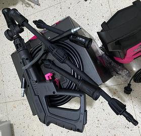 - una lancia a pressione regolabile, con una pressione per la pulizia delle aree più sporche (ad es. pneumatici da moto o MTB).
