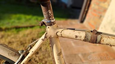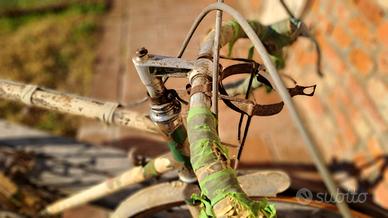 Rare leve Universal 361666 in alluminio, pinze Universal 361666, mozzi Campagnolo corsa ferro e alluminio flange strette Siamt, sella in cuoio FNI, parafanghi in alluminio rotto quello anteriore, cerchi Nisi Moncalieri Torino Italia zigrinati, pipa non leggibile ma credo Ambrosio, pedali in ferro Sheffield, movimento centrale con perno corsa forato.