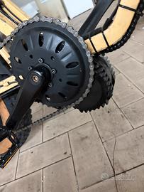 Vendo a malincuore questa bici eletrrica jansno x70 per inutilizzo, la bici nasce di serie con doppia batteria e un motore da 750 watt nominali e 1000 di picco, io ci ho aggiunto un bafang centrale da 1000watt e 1500 di picco (nelle foto non si vede poiche sono prima che lo installassi guardate fino alla fine delle foto per vedere il motore) oltre al motore la bici ha le seguenti modifiche : sblocco della centralina del primo motore, forcella anteriore sostituita con una più performante ad aria regolabile, bauletto, specchietto, entrambi i parafango piu grandi , seconda batteria sostituita con una da 20 ah (come la principale) (do anche l’originale da 14ah)entrambi i freni idraulici con entrambi il disco da 200 mm e avanti pinza shimano a 4 pistoncini e le pedaline per il secondo passegero.Alla bici e’ sempre stata fatta una manutenzione regolare ed e’ completa di tutto, avendo 2 motori elettrici ha davvero una coppia paurosa capace di battere molti 50 di oggi. No affaristi contattare solo se veramente interessati