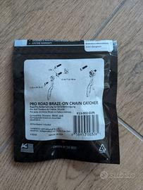 Dente di cane per evitare caduta catena su guarnitura, usato in Parigi-Roubaix K-Edge Guidacatena - Pro Road Braze-on - 2 Velocità - nero La catena Pro Braze-On di K-EDGE è utilizzata dalla maggior parte dei ciclisti professionisti e dalle squadre pro di tutto il mondo ai Giochi Olimpici, ai Campionati del Mondo e ai grandi eventi come il Tour de France, la Parigi-Roubaix e il Giro d'Italia. Installazione più facile - Impostazione e installazione indipendente del deragliatore e del catalizzatore. Più forte - L'attacco separato, più basso, fornisce una presa più forte in modo che la catena non possa cadere sotto il raccogli catena. Design ottimizzato - L'esclusivo profilo curvo della rampa permette un'installazione più rapida della catena sull'ingranaggio, evitando che la catena cada. Specifiche del catalizzatore Pro Road Braze-on Materiale: alluminio 6061-T6 lavorato a CNC Montaggio: tutti i deragliatori a freno Hardware: Include tutto l'hardware di montaggio per deragliatori Shimano, SRAM e Campagnolo.