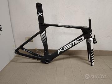 Telaio conto vendita. Kit telaio Kemo ke-t8 da cronometro, nuovo, completo di reggisella, serie sterzo e pinza freno direct mount Shimano 105. Lunghezza tubo orizzontale 58,5. Telaio per freno a pattino.
