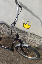 Vendo bicicletta ruote da 20 marca Kenzel modello Sitngo, adatta per persone anziane che non riescono ad alzare le gambe, tutto funzionante, il freno posteriore è a contro pedale, non è una bici pieghevole ma ha un telaio costruito più in basso di una bici normale per agevolare la salita e discesa dal mezzo.