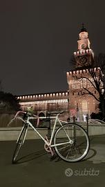 Bici scatto fisso KHS flite onehundred. Marca americana di alto livello specializzati in telai in alluminio. Bici super leggera con guarnitura centrale rosa (custom), adatta per la pista e ceduta con 1-2 manubri (al momento è montato un raiser, disponibili gli altri due in foto, bullhorn e da corsa) Il telaio è leggermente indentato ma nulla che si noti troppo, né che comprometta la funzionalita e la sicurezza della bici. Ruote con profilo medio cromate Montati copertoni da 28, anteriore da ciclocross e posteriore liscio Freno anteriore montato Visibile a Milano e dintorni Se volete includo anche catena decathlon (in foto) Prezzo trattabile ma già molto basso