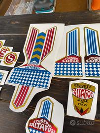 Kit completo adesivi Saltafoss prima serie anni 70: -1 x Stemma anteriore -1 x adesivo telaio scritta Saltafoss -1x adesivo grande telaio sottosella -1x adesivo parafango posteriore -3x S (1 per parafango anteriore e 2 per portaoggetti) -Coppia adesivi "sospensioni regolabili" -Coppia adesivi forcelle anteriori -Coppia adesivi forcellone posteriore Perfetti nuovi. Posso spedire in 24 ore.