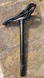 Vendo set originale Bontrager smontato dalla mia Trek Procaliber 9.8 SL, che comprende: Sella: Bontrager Montrose Elite, binari cavi in titanio. Larghezza 138mm. Condizioni ottime, nessun taglio, leggera usura da seduta. Reggisella: Bontrager Rhythm Elite, testa a 2 bulloni, 31,6mm, zero offset (Nelle foto del reggisella è montata un'altra sella che non è inclusa nella vendita). Collarino: Originale Bontrager. I pezzi sono strutturalmente perfetti. Segni di normale utilizzo.